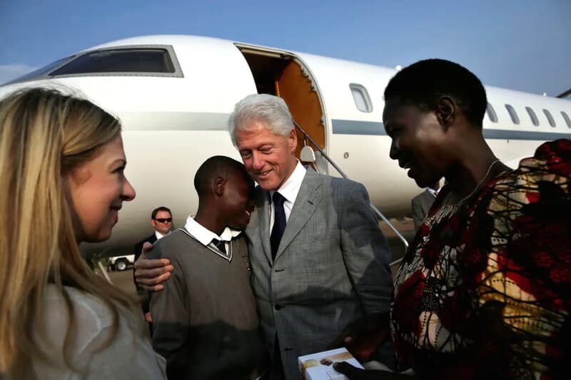 Twenty-six years later, in 2024, that little baby now a 26-year-old aspiring surgeon got the reunion of a lifetime. Bill Clinton returned to Uganda with his daughter Chelsea on a Clinton Foundation tour across Africa, and authorities arranged a private helicopter to fly young Bill and his mother from their village to Entebbe so they could meet again.